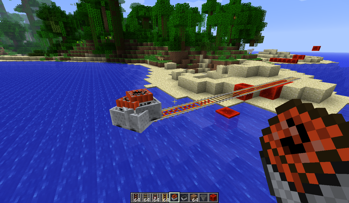 If you use only two carts or so you'll notice their is an explosion followed by the lag. However in my testing McEdit is required to remove all of the dropped items to actually see the effect. I've provided two screenshots from McEdit of the effects (titled double_tntcart_effect etc.). Using three carts my client simply crashes. NOTE: I was only using two, I got the effect when pushing them OFF a rail.