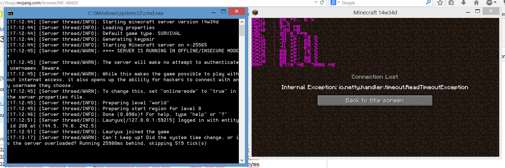 When i try to play singleplayer chunks further than 16 chunks away loads really slowly and in weird pattern. so what i usually did that i creater server and played locally. but the new problem appeared. its affects snapshots i listed and some of older ones. before it was fine but now when i create server with 32 distance i cant connect. it says logging in then downloading terrain and finally drops error everytime and always the same one. my pc is running good cpu and gpu and 8gb of ram so hardware shouldnt be a problem for it and also because previously it was fine. even on older pc. so please fix this cause i really would love to you more than 16 chunks but its broken on server side and partly on singleplayer as well