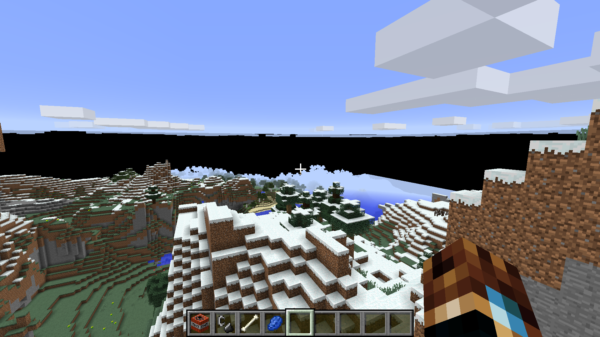 When you fly into the sky above y: 75 the horizon will render black and flash occasionally. This affect only appears during day time.