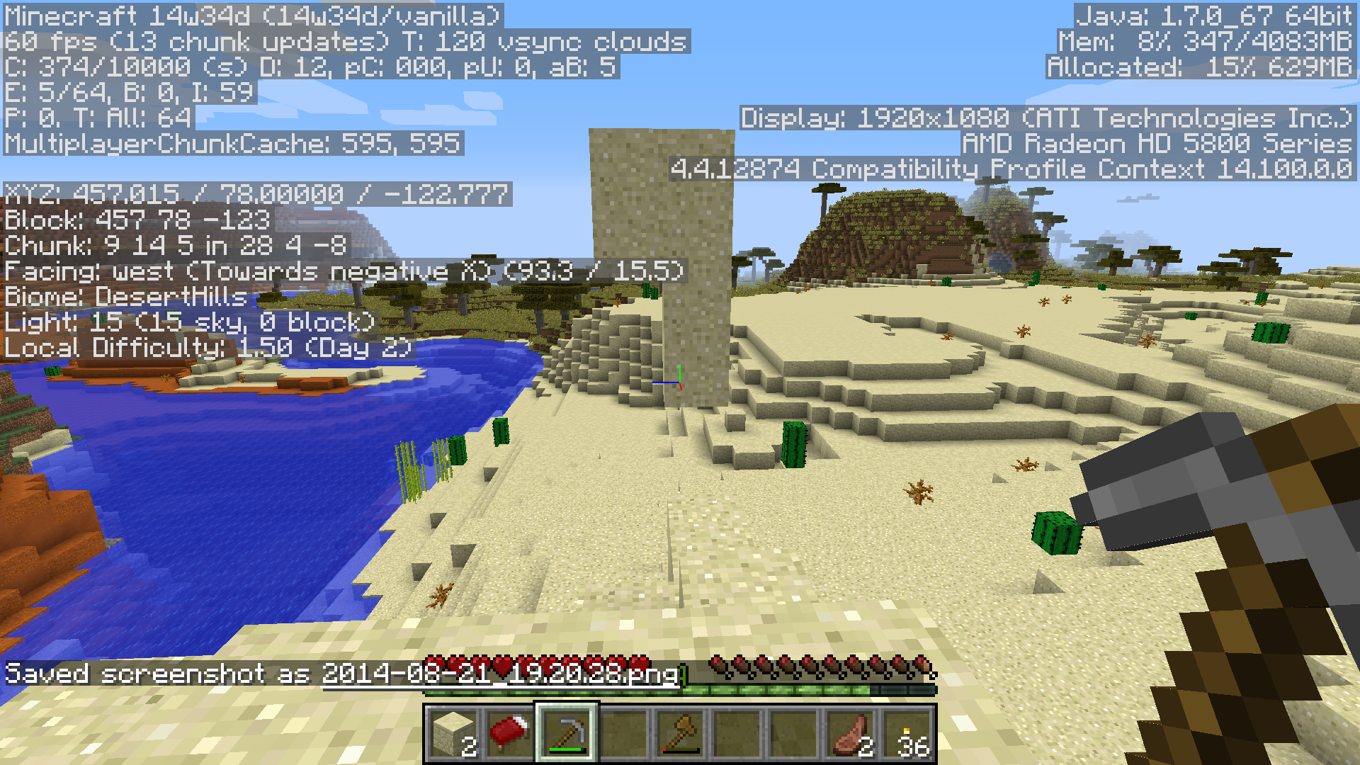 Sand in newly generated chunks is initially unaffected by gravity, leading to floating sand blocks, unsupported sand "roofs" etc.