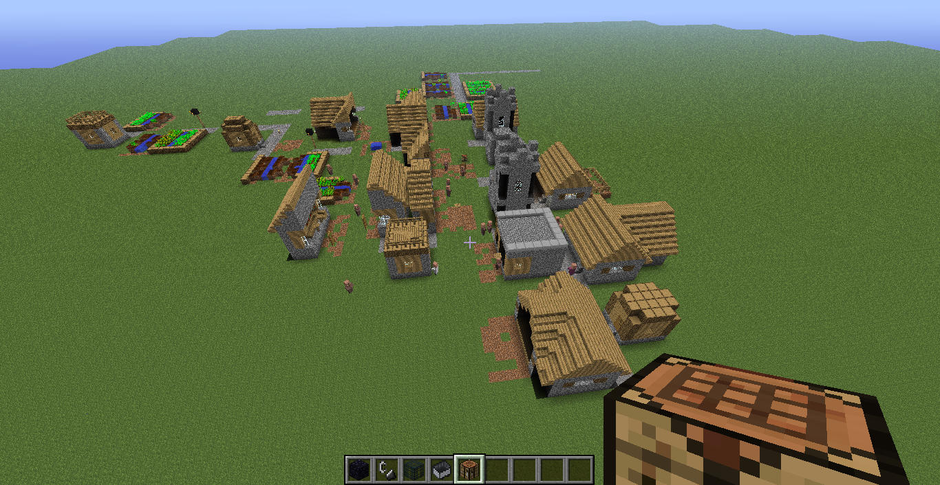I was looking around a superflat world, I found a village, but only half of it had actualy appered, and villagers seemed to walk on air blocks
