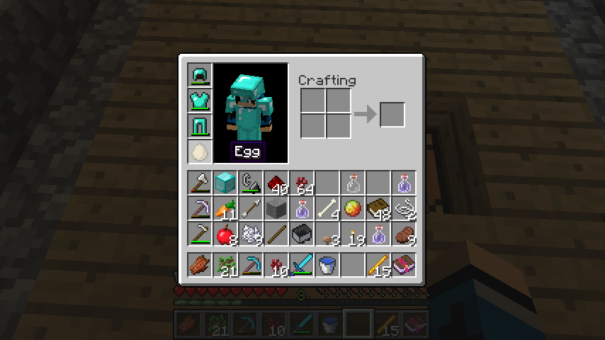 While standing on a wood slab in my friends base on a snapshot server, I was using the crafting table and then exited to check a crafting recipe. Doing that resulted in the items dissapearing, and one of the items taking the place of your Boots, deleting the boots.