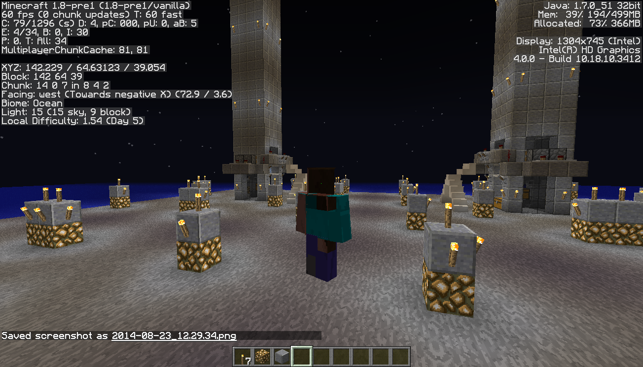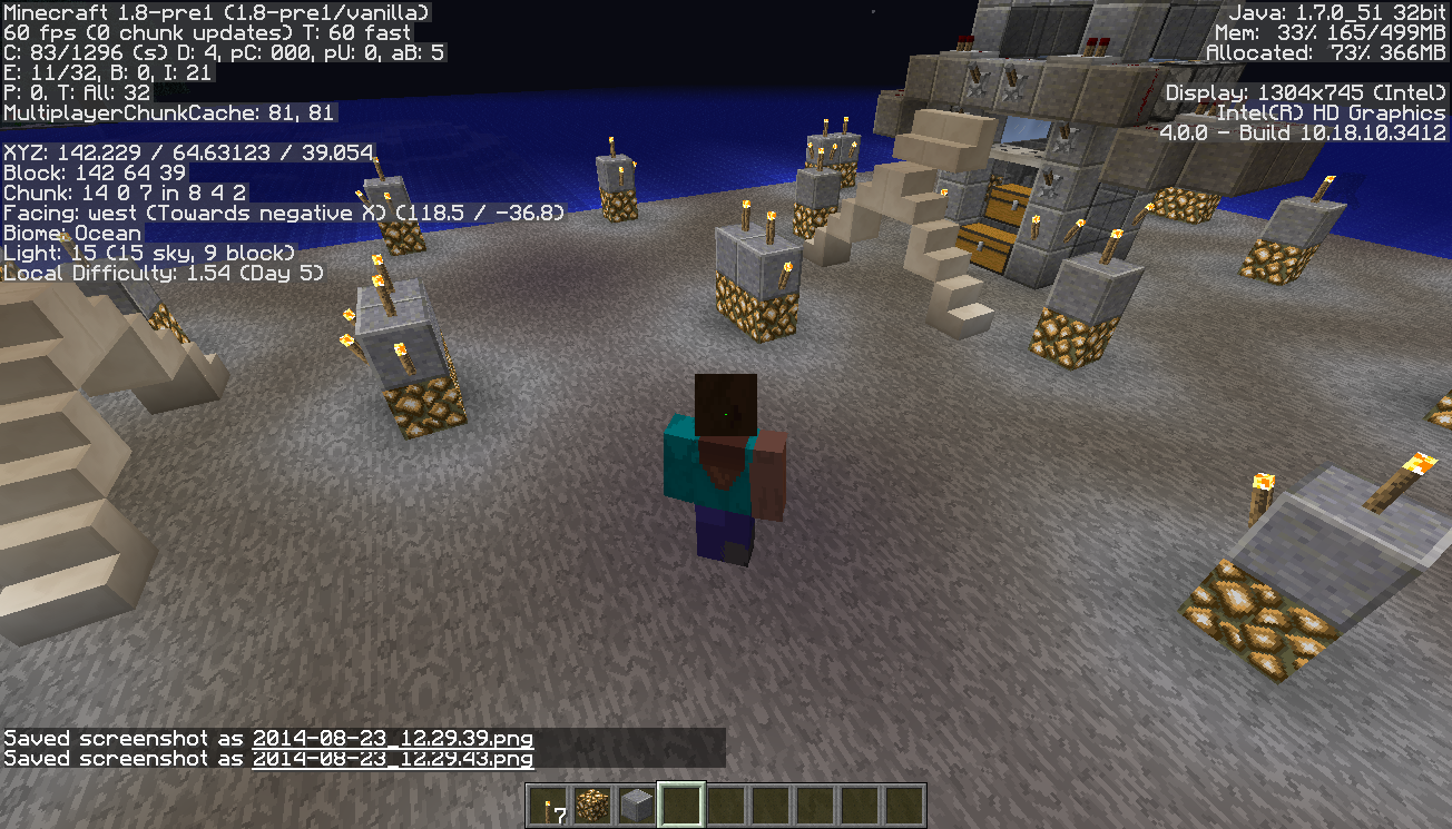 There is a problem with skin generation/ head for Minecraft 1.8-pre1. The texture for a regular head is strange, and twice it translated into my player again. After restarting it temporarily fixed my player, but it bugged out later on.