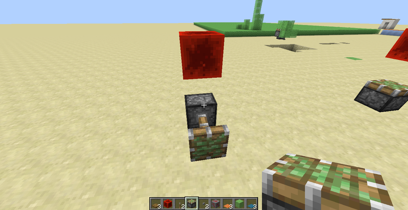 2. place redstone block two blocks over the piston without placing any blocks directly next to the piston.
