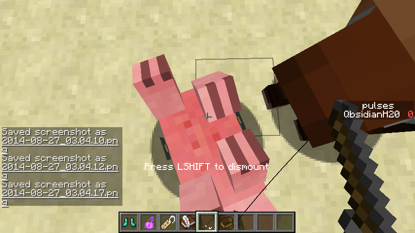 3. you will ride pig, and also trigger the right click action (wearing armor, throwing projectiles, naming, writing a book, trying to fish a pig... etc)