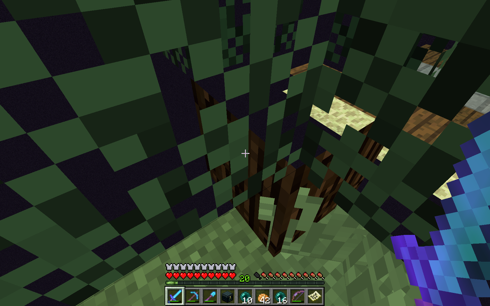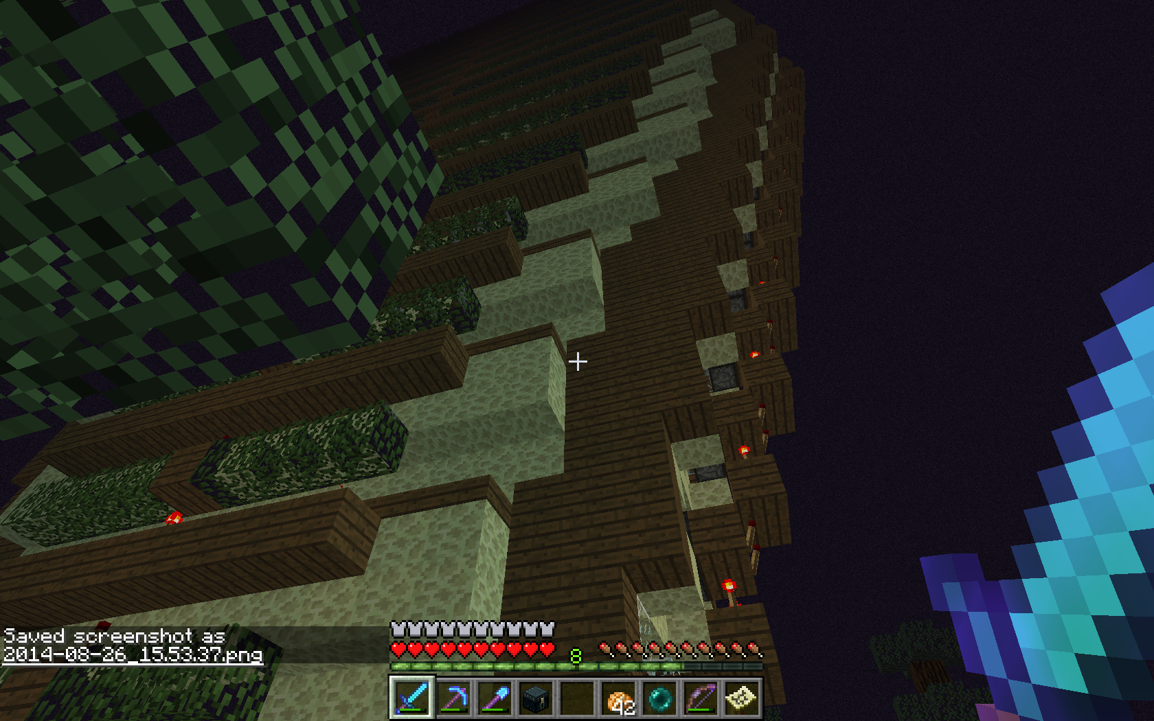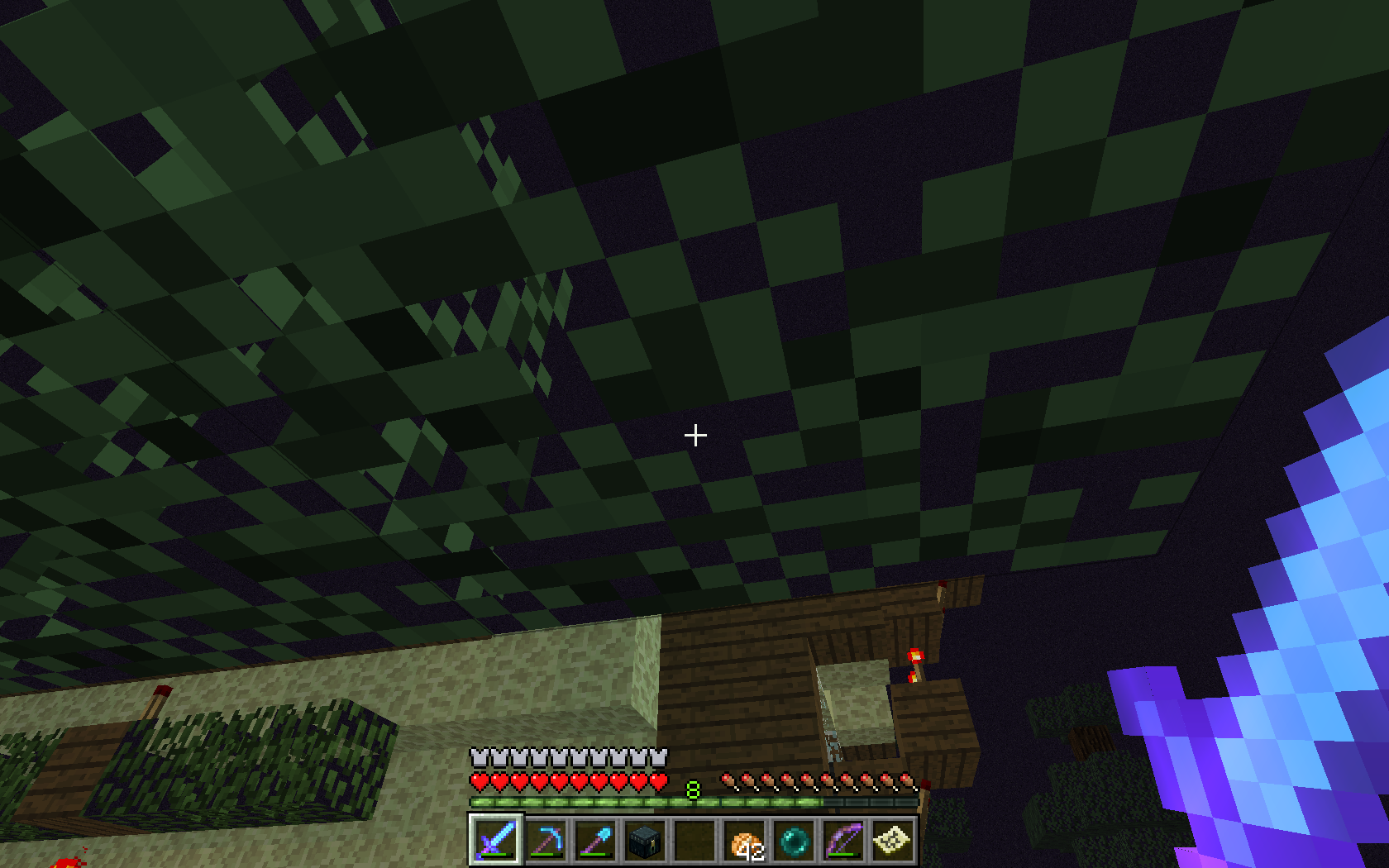 just to point out i just realized that there at some oak tree leaves in the picture close to the Enderman farm that shows the same transparency issue end stone docent seem to be affected unless it is behind other types of blocks also a little out of subject but you used to be able to have paintings in the same area as carpet now you can't and the previously placed paintings pop off the wall sorry should open a ticket for that but some one can look into it.