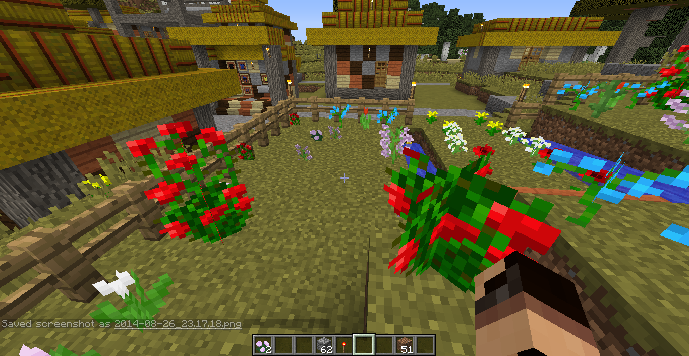 All specifically player placed two block high flowers( including double tall grass and ferns) where found either on the ground in item form or with the top half missing, in which the bottom half would soon break and drop in item form as well.