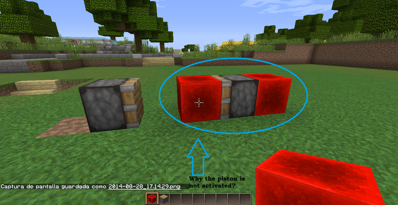 Putting two piston looking one to other with 2 blocks of air between both, and then putting a redstone block in one of the two air blocks and then putting a redstone block next to both pistons and then destroying the redstone block of the piston extended, the piston no extended doesn't extend.