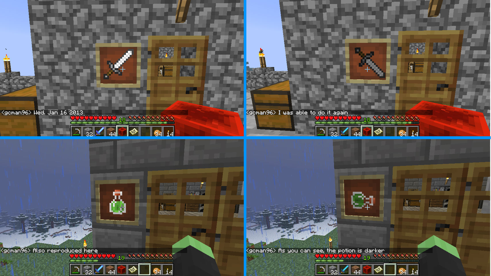 Is this still a concern in the latest Minecraft version 14w08a? If so, please update the affected versions in order to best aid Mojang ensuring bugs are still valid in the latest releases/pre-releases.