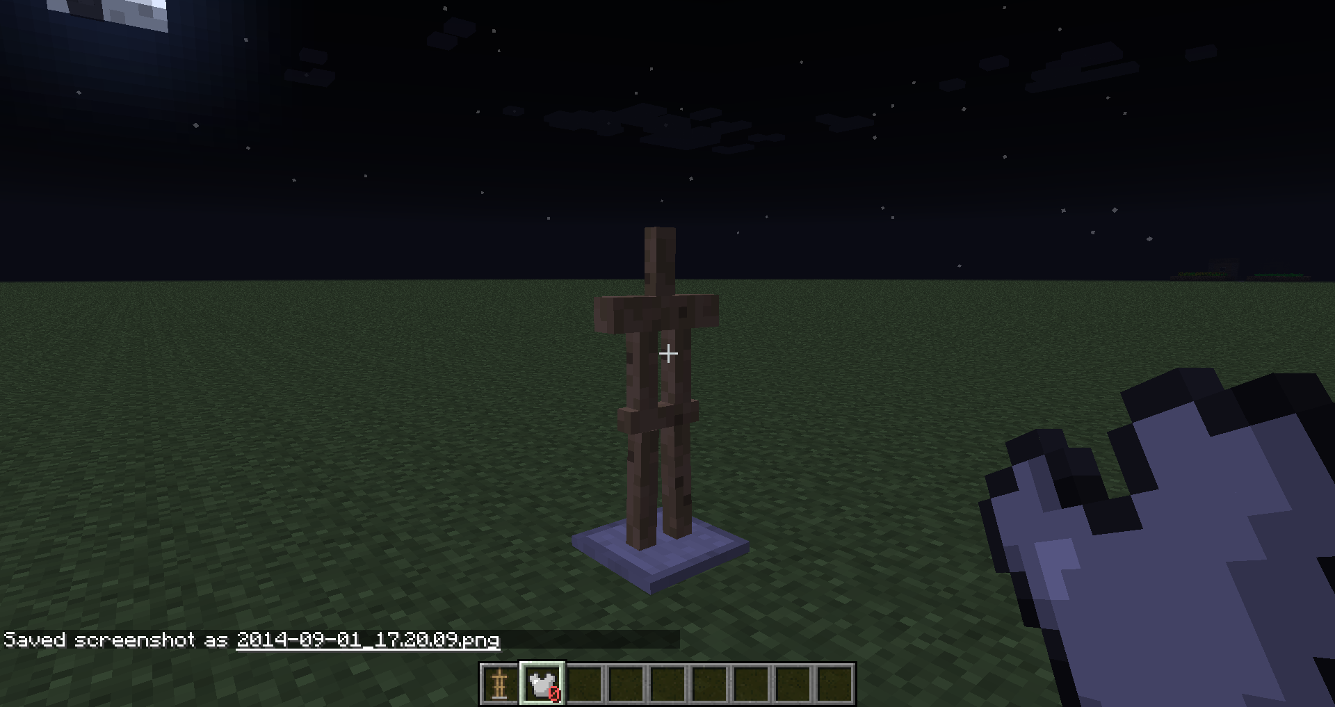 /entitydata @e[type=ArmorStand,r=5] {Equipment:[{},{},{},{id:"minecraft:iron_chestplate"},{}]}Third rightclick the chest plate to get 0 iron chestplates in your inventory