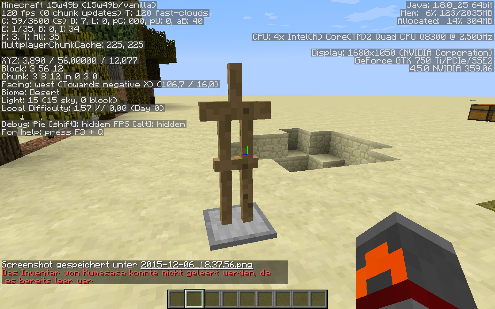 Result: The 0 iron chestplates in your armor slot are still there.