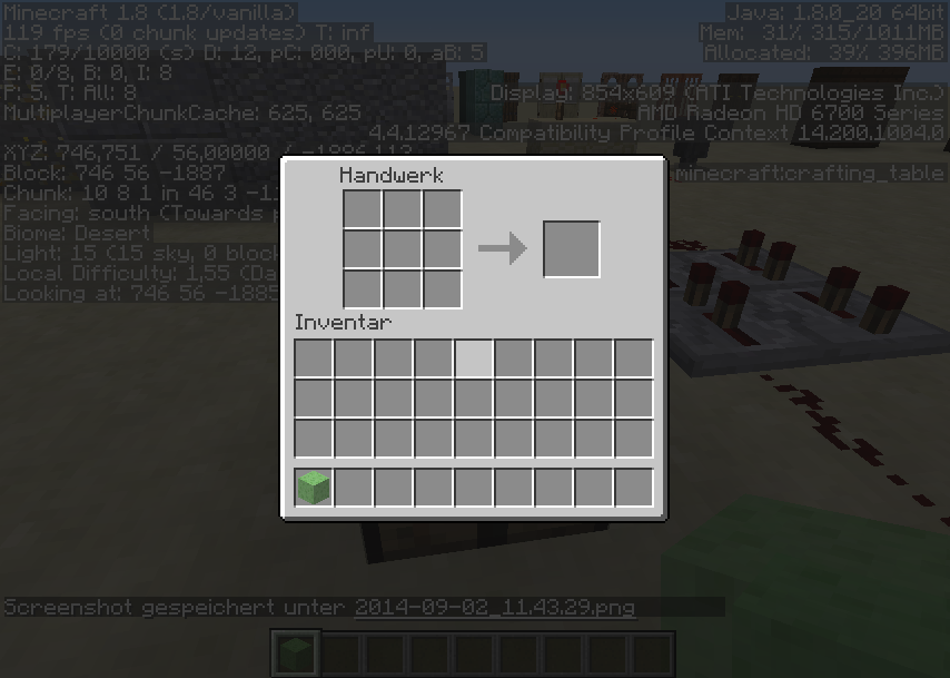 2. Try to open crafting table with a block in your hand