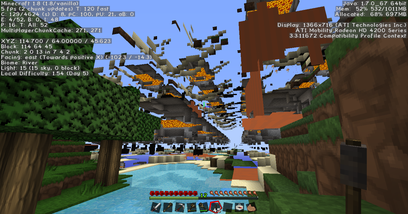 Also, I don't know where to report this, but the new fps improving rendering system does not work for me. I struggle to hit even 5 fps. Occasionally, I will get a couple seconds of 20+ fps, but most of the time it's a struggle to do anything. May or may not be related to the world rendering issue, just thought I'd mention it in case it is.