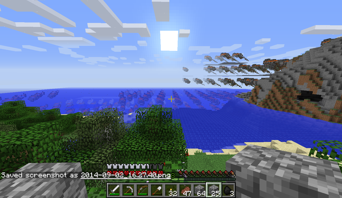so i joined my world, i was mining and when i finished and went to the surface to see my beautiful dogs, EVERYTHING was glitched. I saw a weird crab like creature (as seen as the first screen shot) i was really freaked out by this because it was an mod, as it swam around in the little pond,