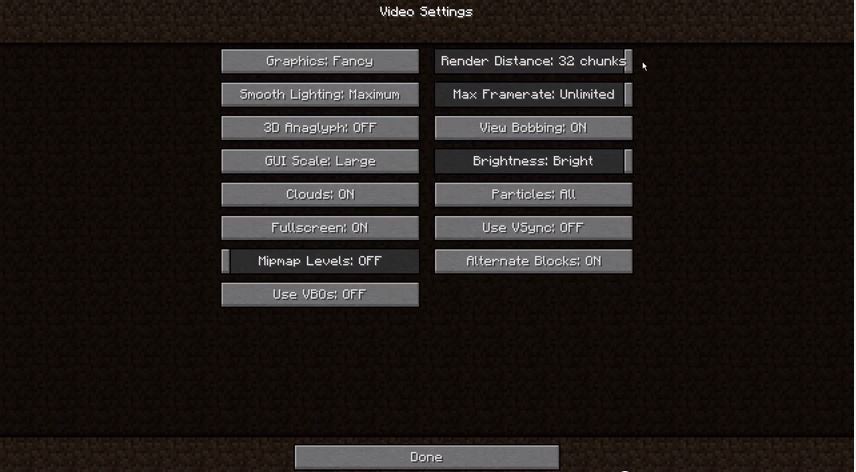 3. change the Render Distance to 32 chunks