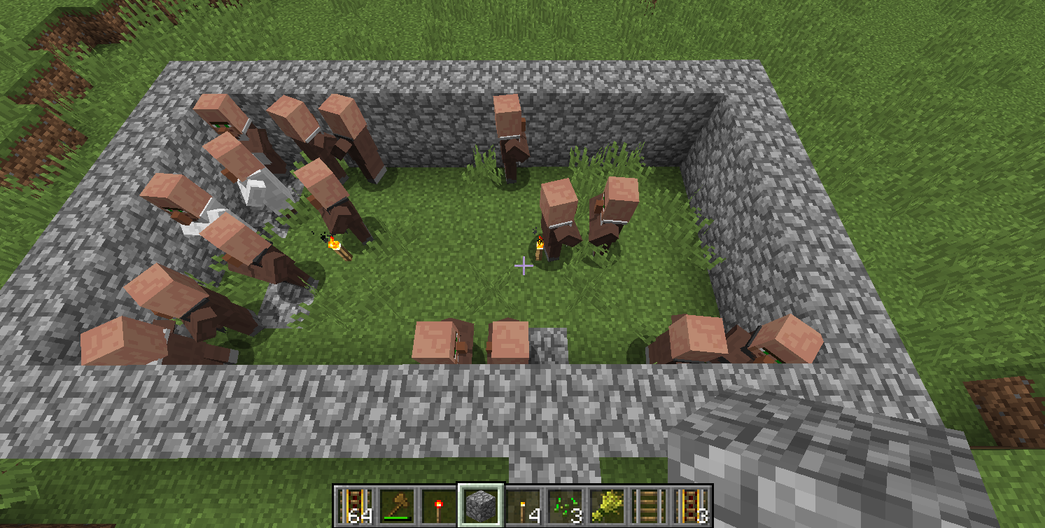 These are all the villagers from a village I found. The village has two libraries, one butcher shop, and no blacksmiths. Yet there is a ridiculous amount of butchers and blacksmiths, and no farmers.