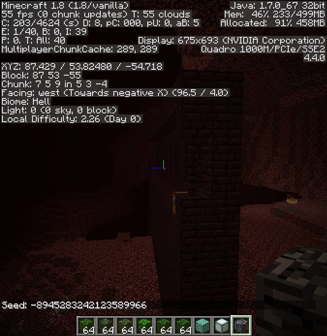 I found this slice of Nether Fortress all by itself. Only half of the hallway generated.
