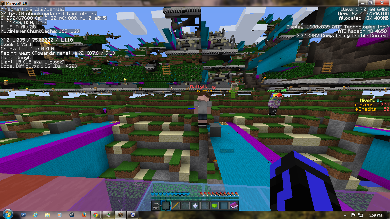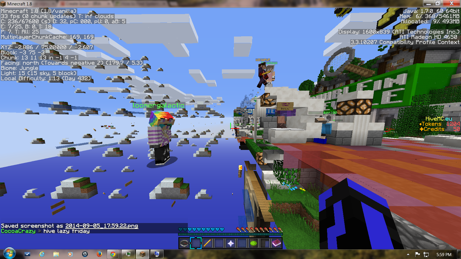 When Going past Just X=0 all the chunks past 0 is gitched I only tested this on hive. I have oictures below. When i take screenshoits ingame it show normal .The Y axis past X=0 I think is messed up you can walk on past X=0 and its just like the block is there you just cant see it.