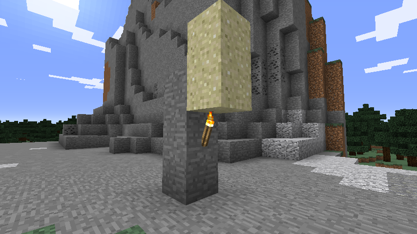 The entity FallingSand's AI is broken.Two sand blocks,or any blocks affected by gravity,is stacked one top of another and a torch,or any block that it should break on,is placed on a wall(shown in picture 1).When the bottom sand is destroyed,the top sand just falls through the torch and does not self-destruct(picture 2).I don't think this works as intended