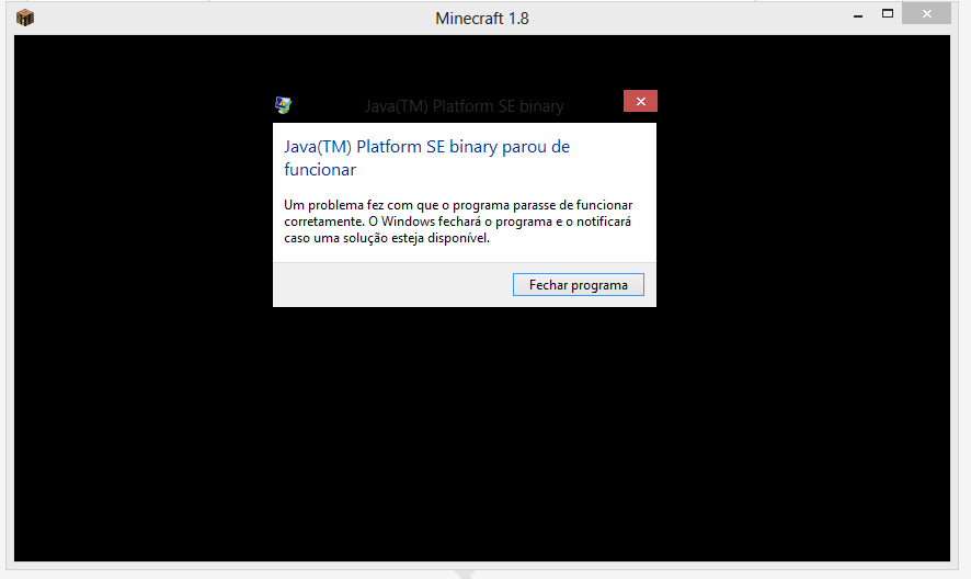 When I join one day, it freeze in the MOJANG screen, and show: "JAVA (TM) PLATAFORM BINARY STOP WORKING", and it closes.