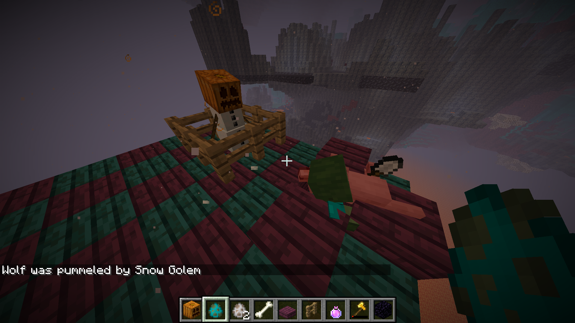 Note: It's easier to use tamed wolves in this situation as their tails are a visual indicator of their health.