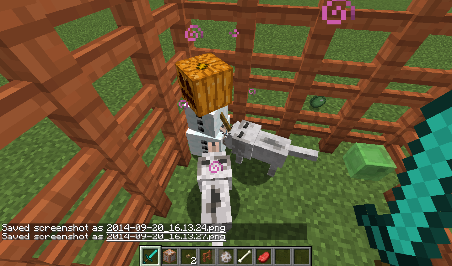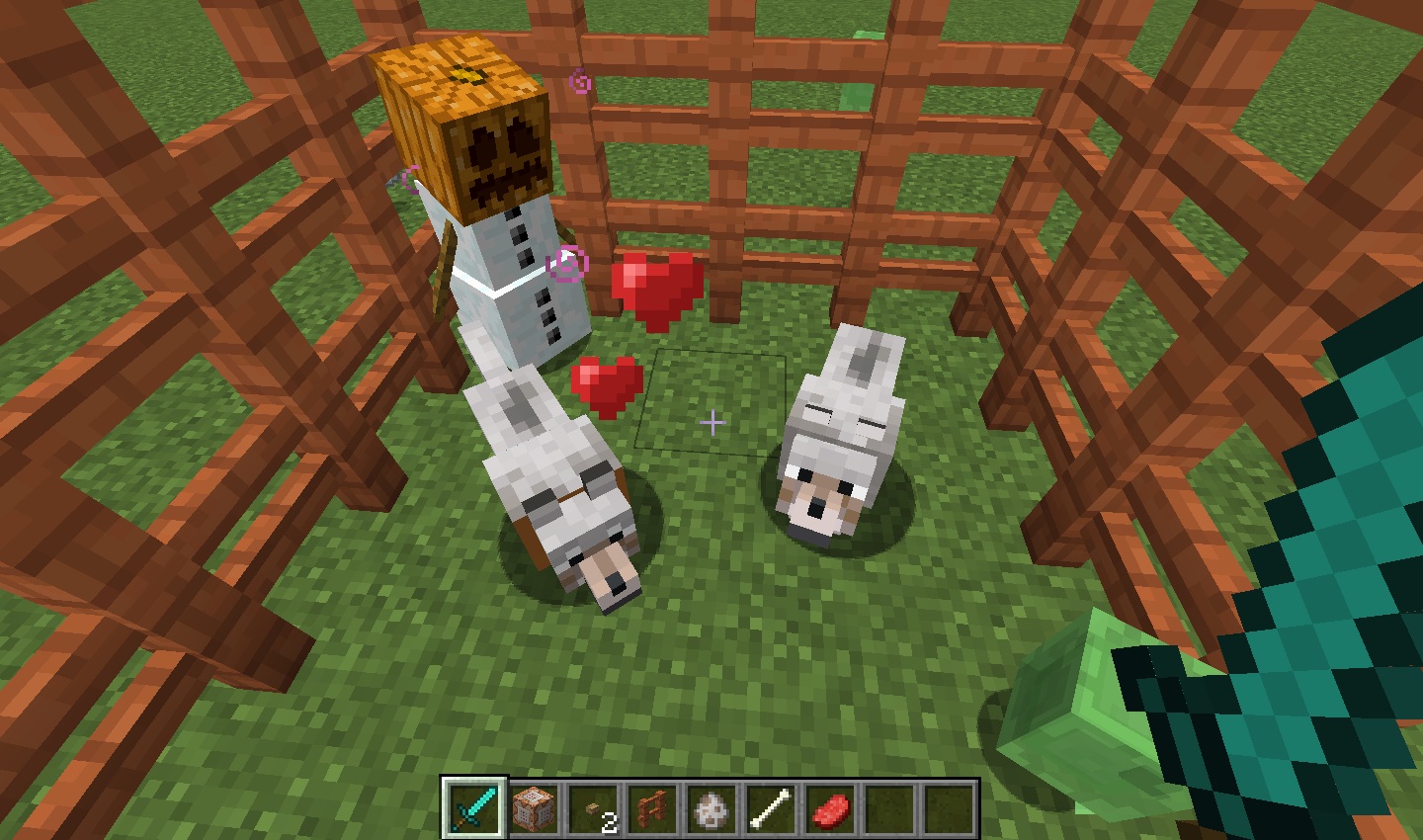 1. summon a snow golem and make it accidentally attack the wild wolf.