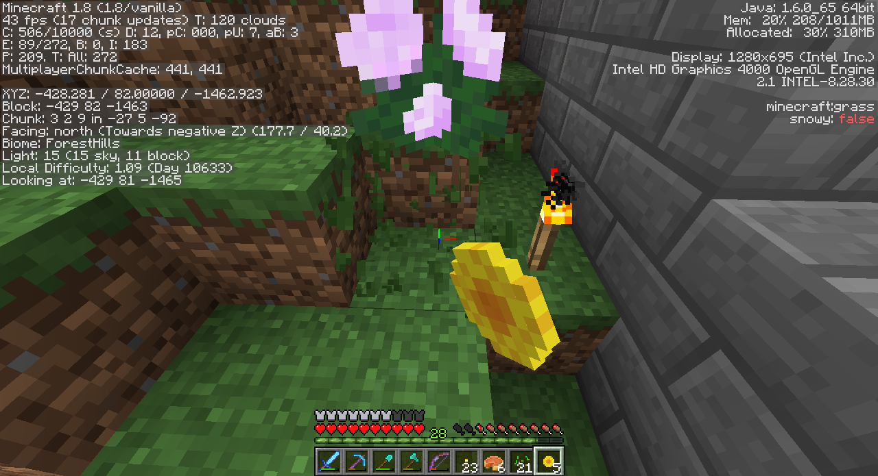 Break tall grass or sunflower on bottom block. Top block shows peony flower texture briefly. Does not drop peony