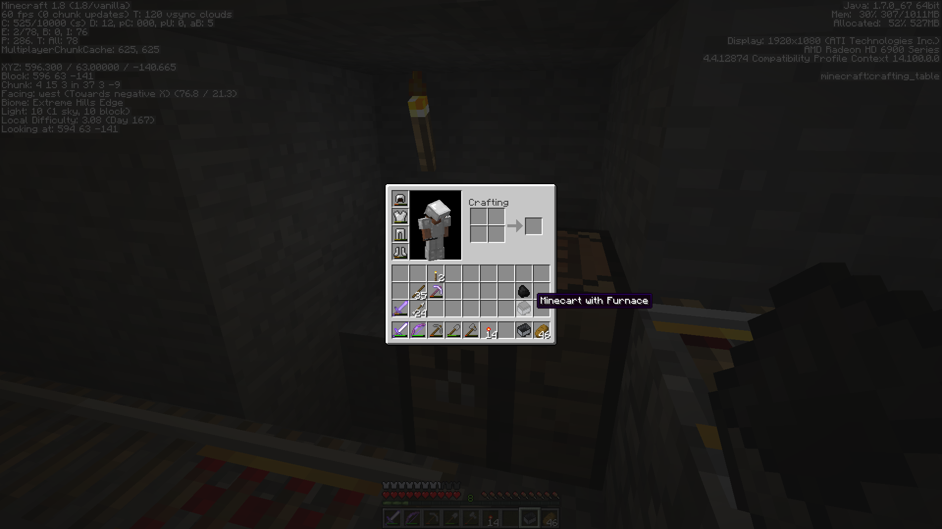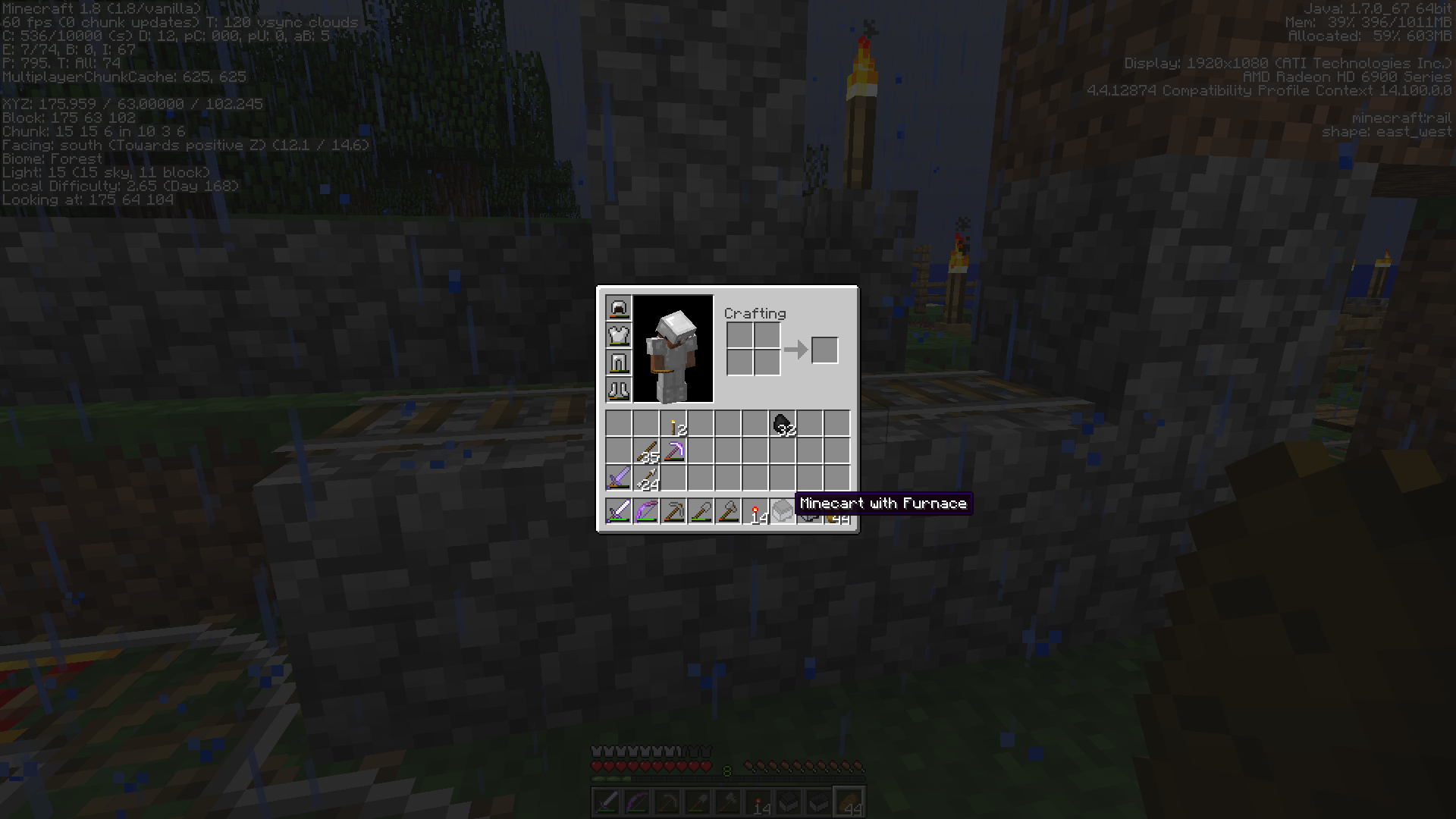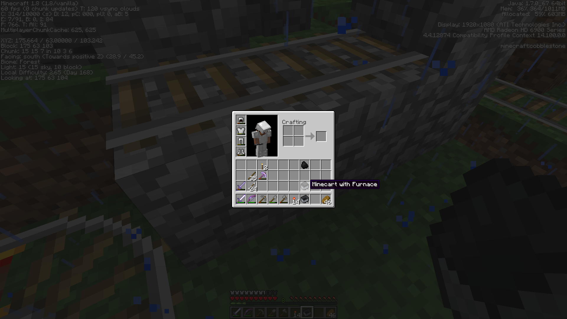 another thing when I do get the minecart furnace working in the middle of the track and linked to the regular minecart, I can get it to pull me, but second problem is that the two carts separates at any turn in the track. Why does that happen?