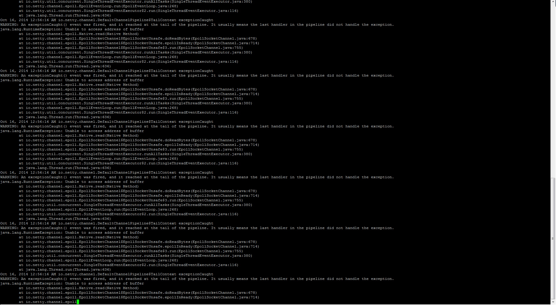 Everytime i try to join my fresh updated server, the Java VM on the server falls into a loop with the messages in the screenshot below. I just have to click "Multiplayer" and the client tries to get a connection to the server, the server crashes. The messages don't appear in the log files nor in the crash-log files. But i can stop the server normally with 'stop'.