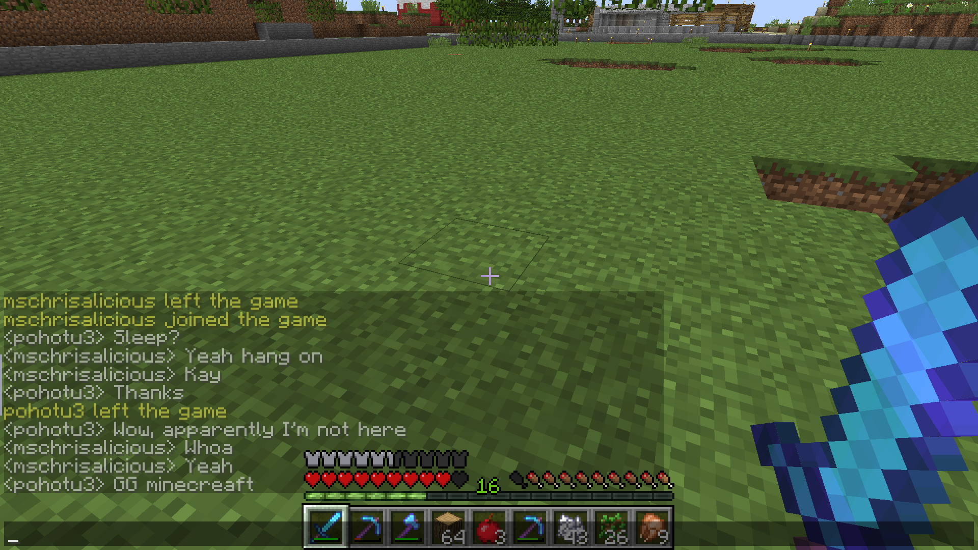 6.) New session is still in world, and interacts as normal, however the 'tab' menu only displays other players, not new session.
