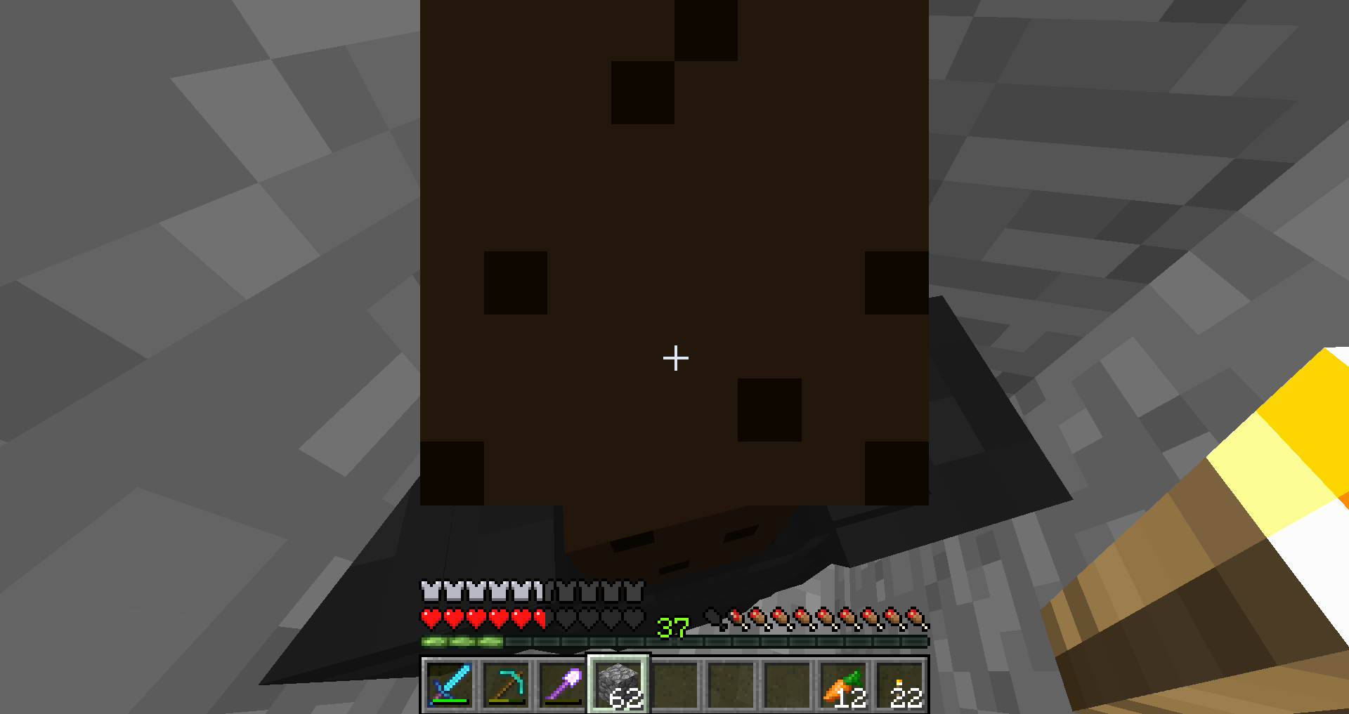 Standing in a 1x2x1 hole with a torch at head level will tuen the player and the items they are holding darker then normal.