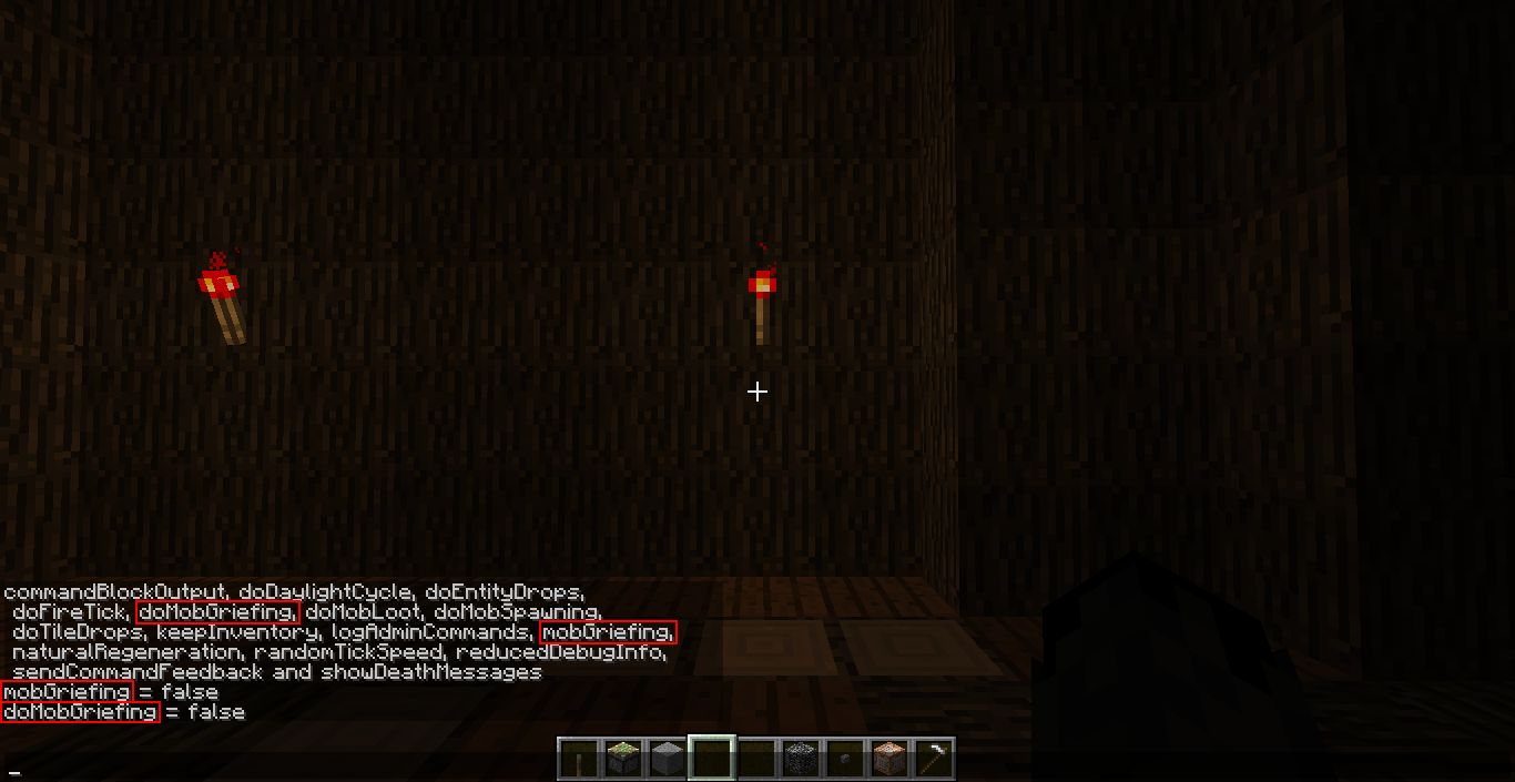 The gamerule 'mobGriefing' now has an alternate gamerule argument called 'doMobGriefing', which doesn't do anything (but implies it should change the same gamerule).
