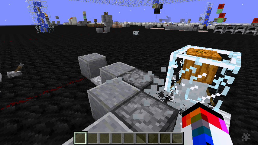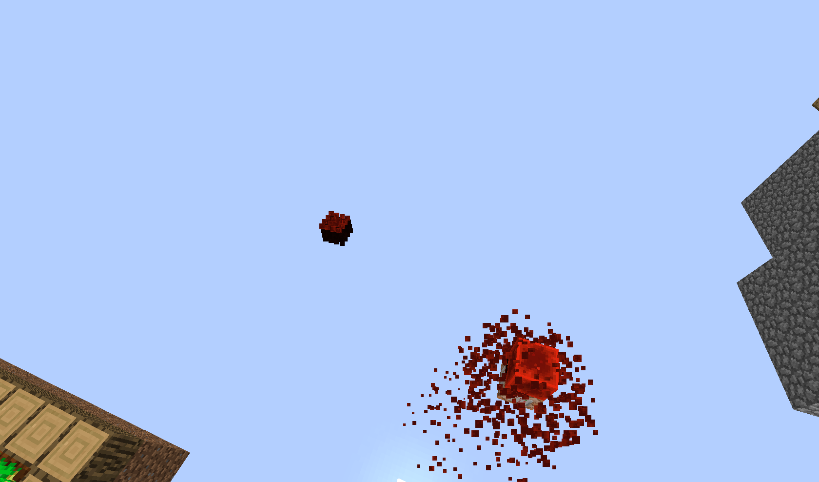 Chin Cheern there is a redstone clock that uses the command "setblock ~ ~1 ~ redstone_block 0 destroy" which is a really fast clock. One problem with clocks is the particles it creates. I was using it and notice that for a split second of two it seems create random particles that trail somewhere, I think Yoo Tae Jong has a good idea of where they are trailing to. The bug is the particle that shows up in the pictures I posted.