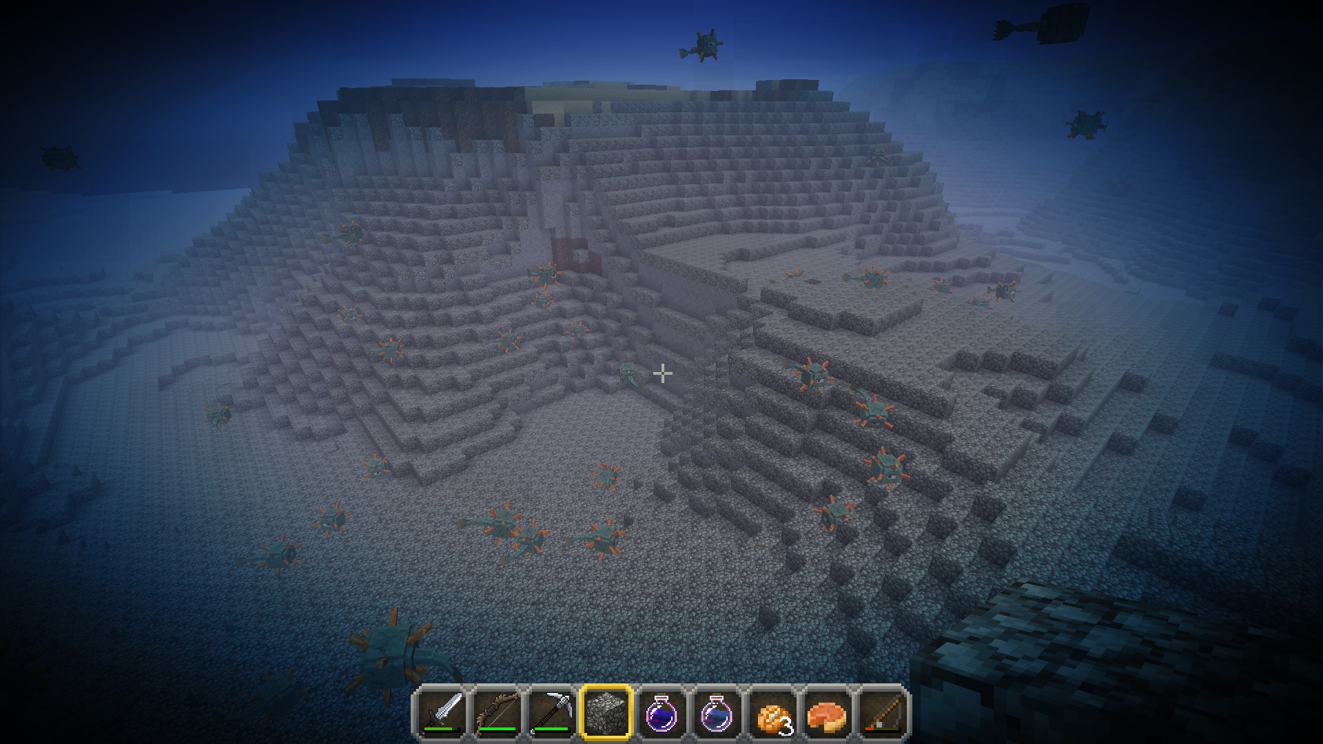 Ok...so there I was in my boat ready to take a dive to the Ocean monument. I drank my potions and jumped out of my boat and swam down and well surprise, surprise. No Ocean monument anywhere just the guardians. I even switched to creative mode and dug into the rock I thought maybe it was under it. I also looked in the surrounding area. Nope. The guardians acted as if one was right there but it wasn't.