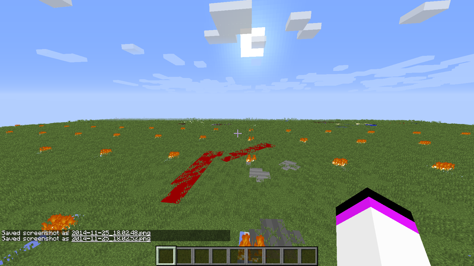 when i spawned in istarted to walk and a big tornado of grey blotches appeared and there were consistent patterns of lava lakes in/on the ground.
