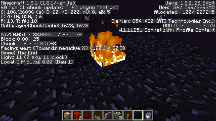 2nd picture: notice the lower FPS and the endercrystal is not inside a block