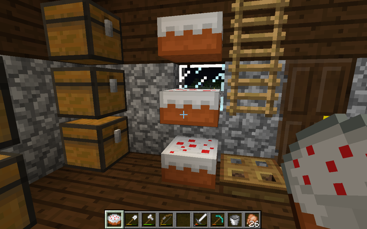 If multiple Cakes are stacked, eating or distroying the lowest cake destroys the cakes on top... if you stack three cakes and eat the lowest, all 3 disappear on the last "bite", if you destroy the middle one, the upper two disappear...