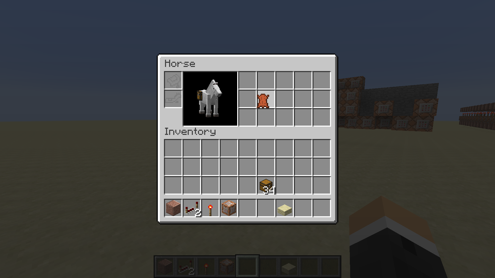 3. Click on an item in your inventory, then move the cursor over and click on a slot in the horse's inventory.