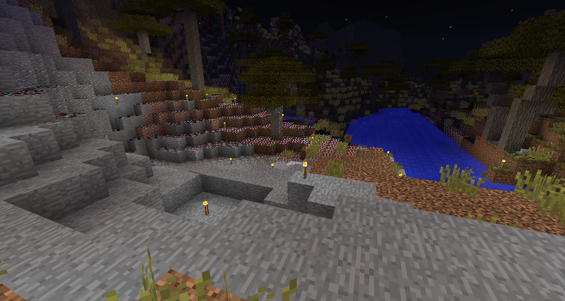 Game launches normal and after about 20 minutes of gameplay the textures around the player turn these colors. The only normal textured blocks appear in a 16 to 20 block area around me. Two of the attached screenshots have the F3 info. If I exit the game and close the launcher, the game starts normal again until play for another 15 to 20 minutes then it starts again. Any help with this is greatly appreciated. Thanks.