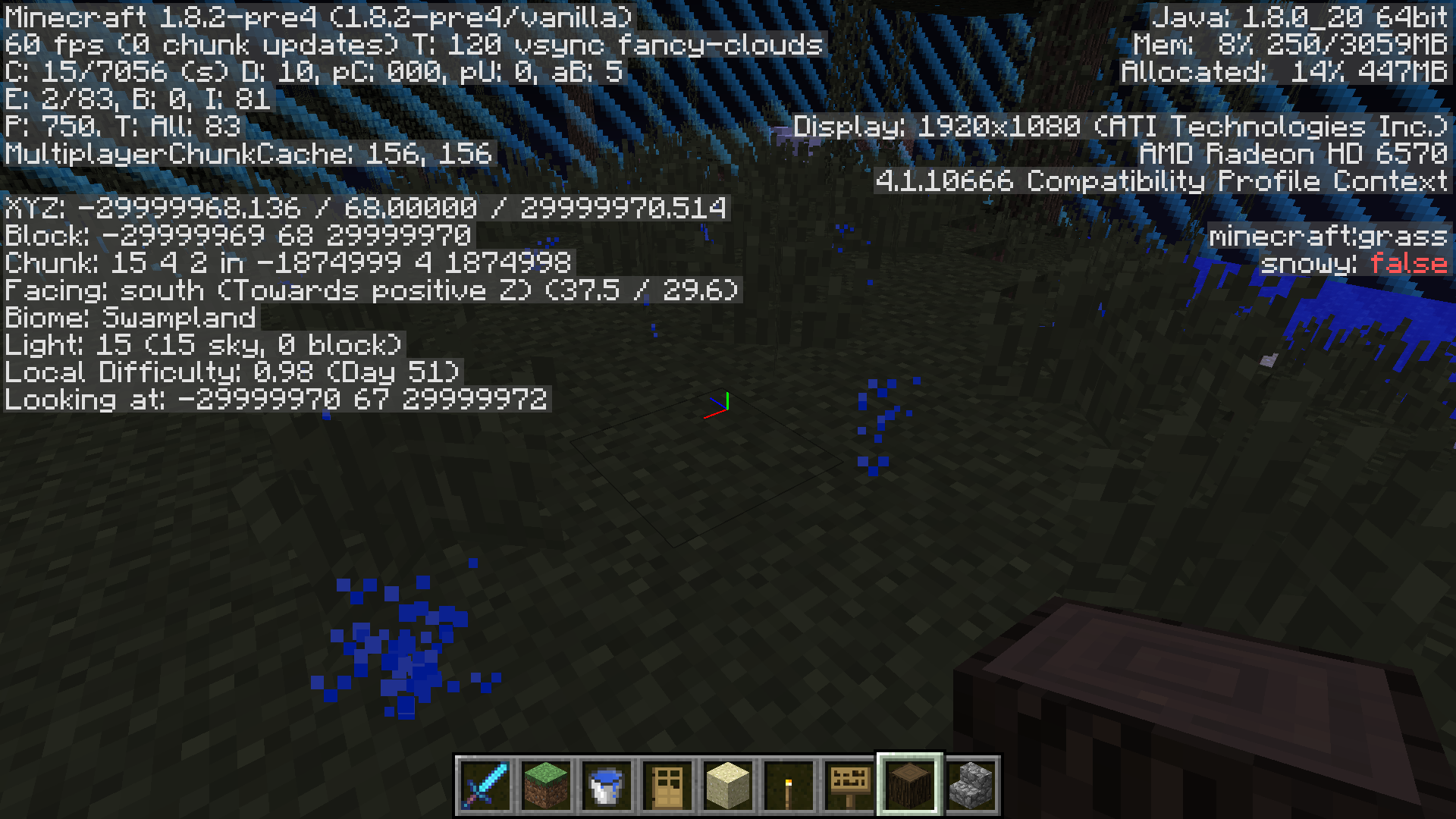 The first 5 screenshots were taken on my 1.8.1 vanilla SMP server, where I first discovered this issue. The last screenshot was taken in a 1.8.2-pre4 single player world, as I figured I'd check the latest dev version to see if the issue persists.