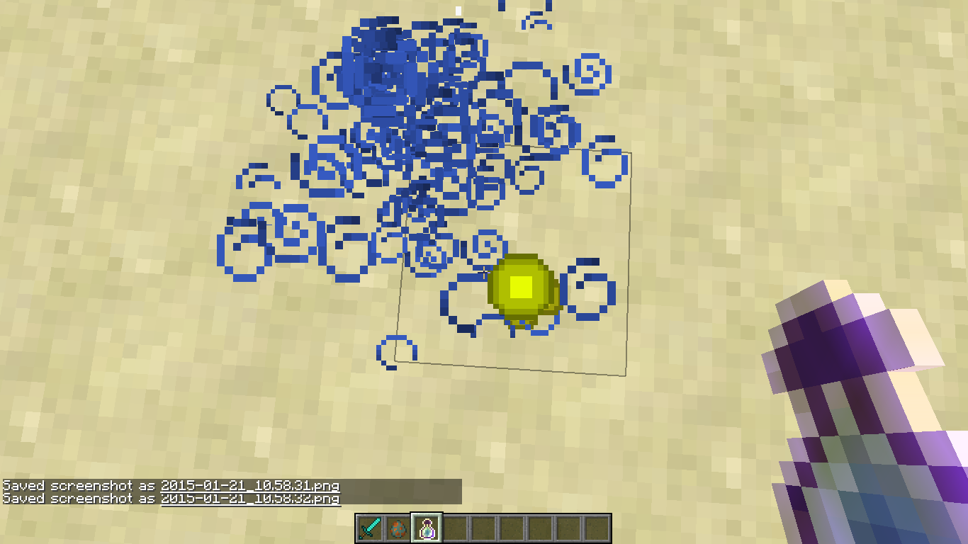I throw the bottle charmed particles are displayed in one place, and throw the bottle a little enchanted elsewhere. Sorry, I do not well versed in English, I'm from Russia, and I use translators from the Internet.