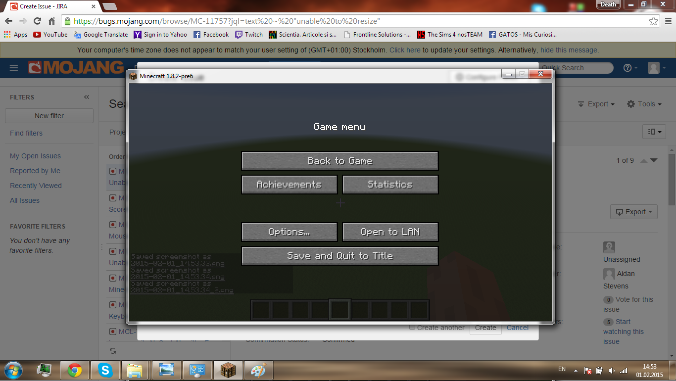 I've searched it but I only found errors occurring whenever you RESIZE your Minecraft window. This time, as you can see in the attachment below, I am in windowed mode (not fullscreen) and unable to resize the Minecraft window (the "maximize" button is unavailable; I am sorry I can't show it more clear with my cursor, the screenshot function does not recognise it)