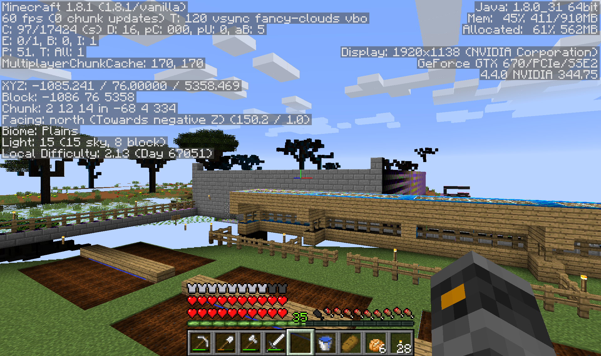 Colors of distant blocks go crazy at random times after breaking blocks. Changing video settings doesn't make it go away. Only thing that fixes it is restarting minecraft.
