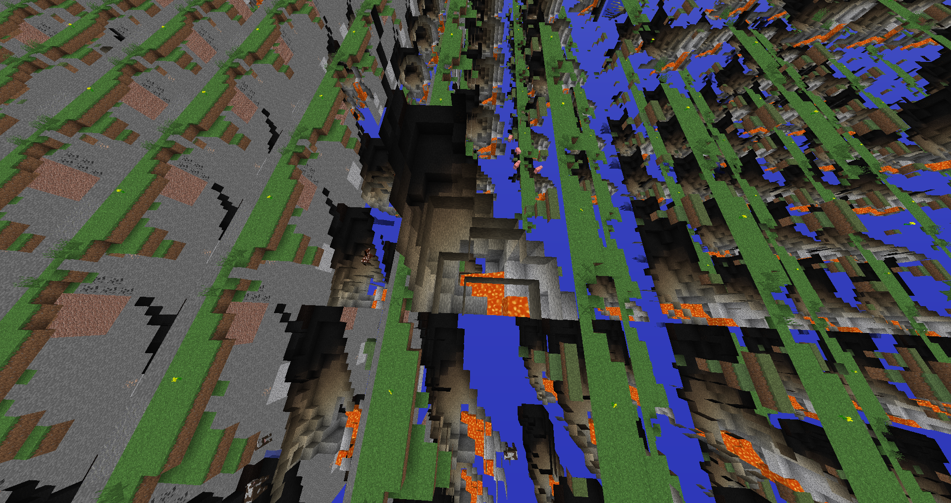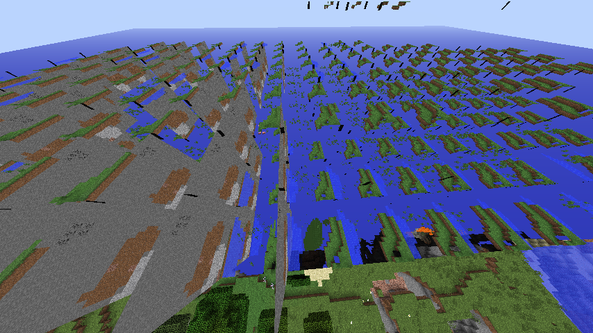 Desde el 25 de enero he tenido problemas al cambiar la distancia de renderizado, desde 2 chunks de distancia hasta 6 chunks me va muy bien, pero a partir de 7 chunks de distancia en adelante el mundo se me "corrompe" (en las imágenes se puede ver perfectamente), en el link que les mando se puede ver lo que le paso a un youtuber https://www.youtube.com/watch?v=D5DEYuaw474, esto me pasa no en un solo mapa, sino en todos los mapas que tengo, y también me pasa en servidores, y cuando cierro la sesión y la vuelvo a abrir, sigue el problema Nota: tengo minecraft 1.8.1 y optifine instalado.