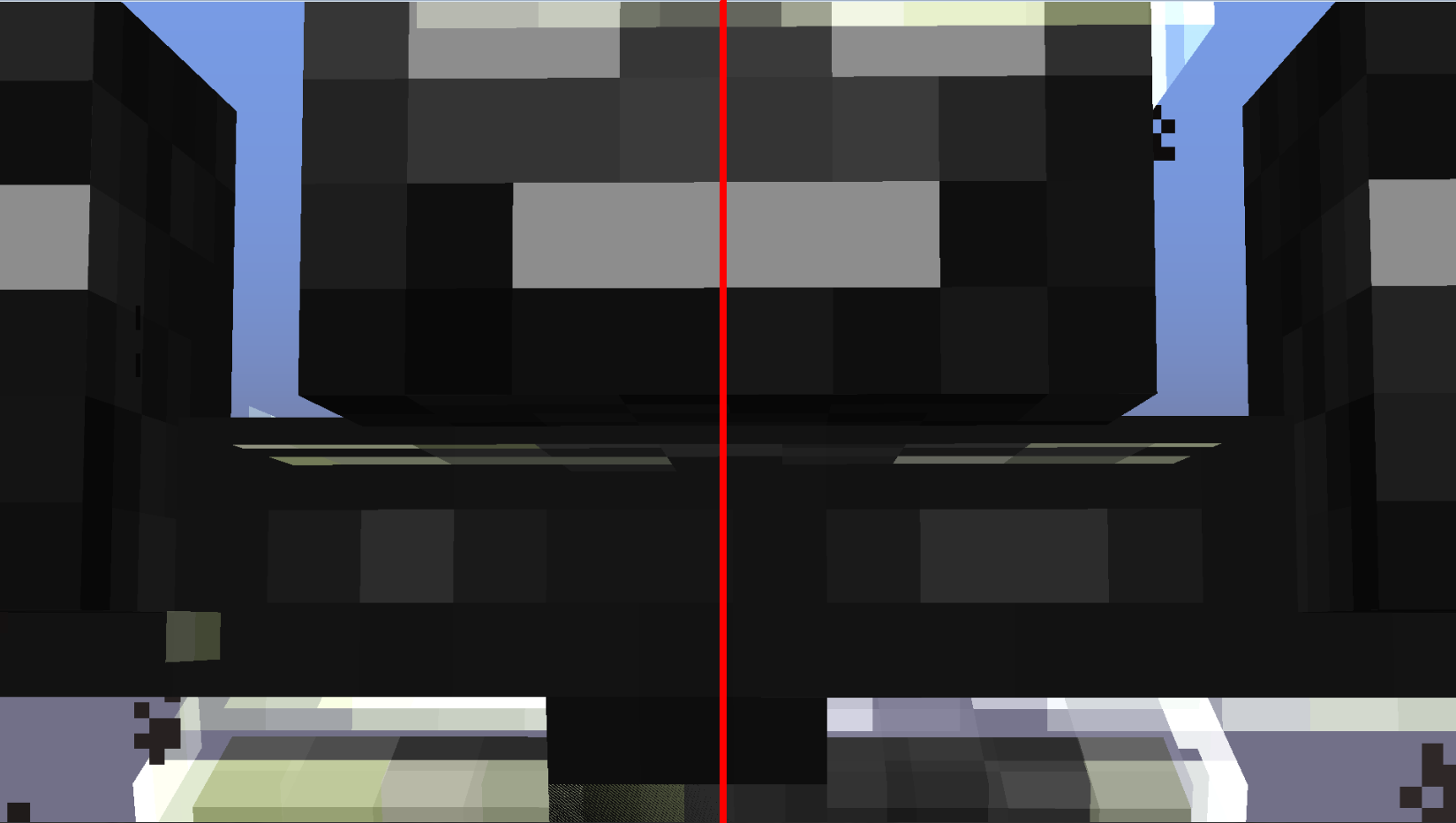 Attached is a screenshot of the most dead-on view I could obtain, and a line depicting center (between center-two pixels of the skull).