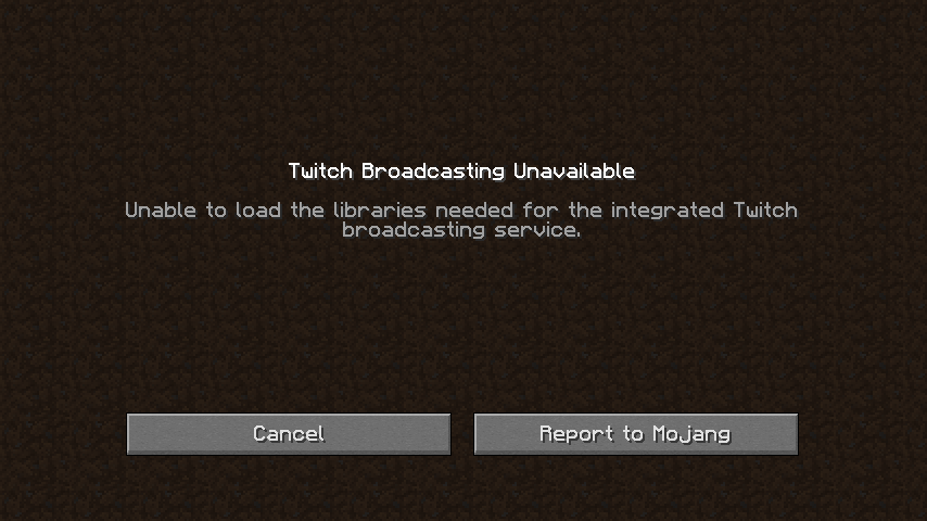 Unable to load the libraries needed for the integrated Twitch broadcasting service."