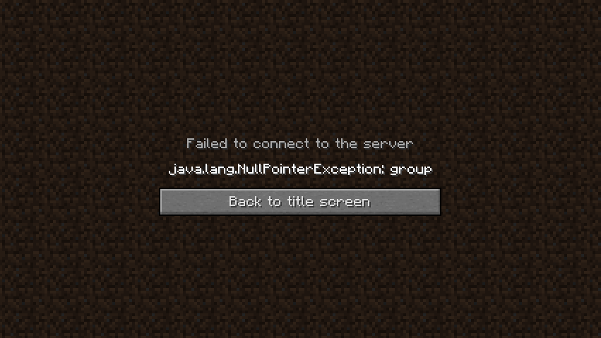 Everytime I go to access any 24/7 minecraft server it says 'cant connect to server' If i go to direct connect I get this very short generic error: java.lang.NullPointerException: group. This has been going on for 2 days now. And I have tried several methods in fixing it.