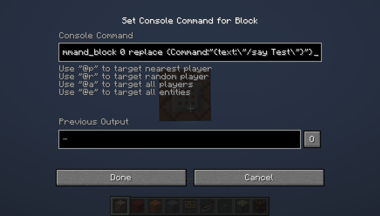 {text:"/say Test"}