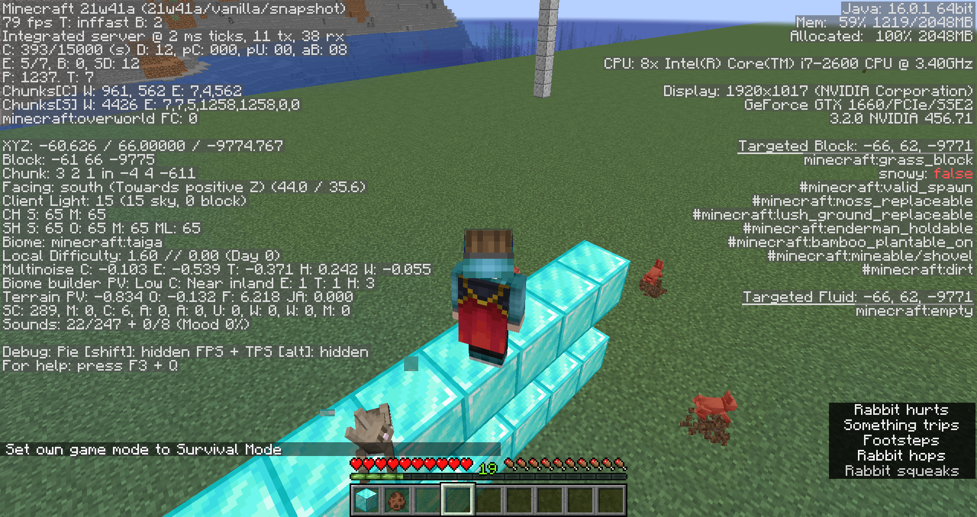 Spawn rabbits on the top of these blocks