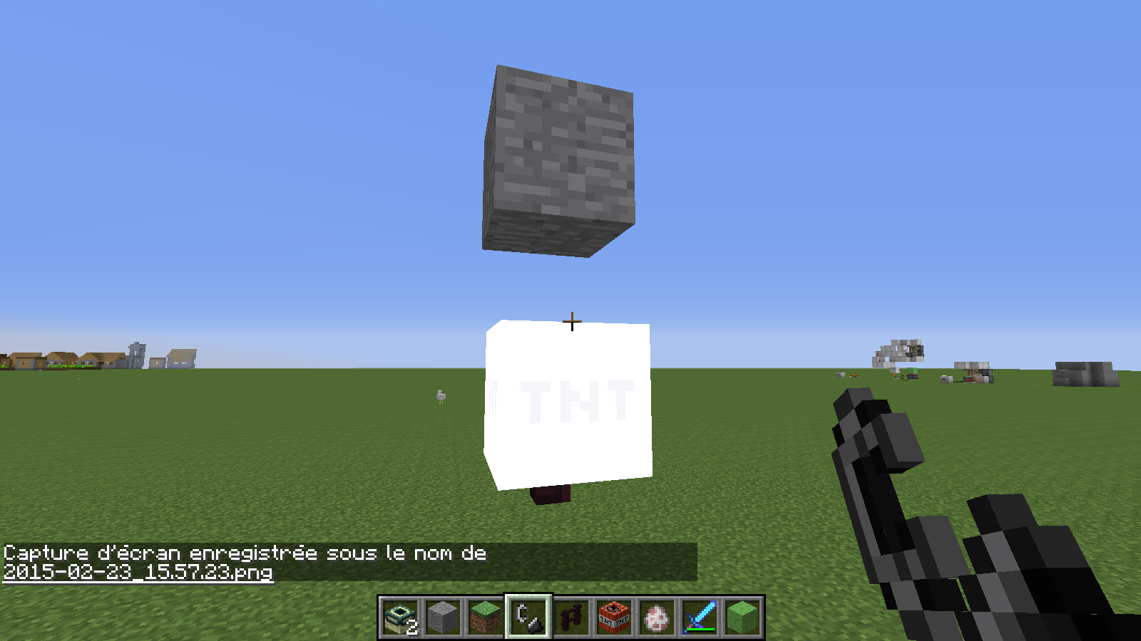 Tnt activated go through the fence when there is a block above the tnt block(without the block above the tnt did not bug).